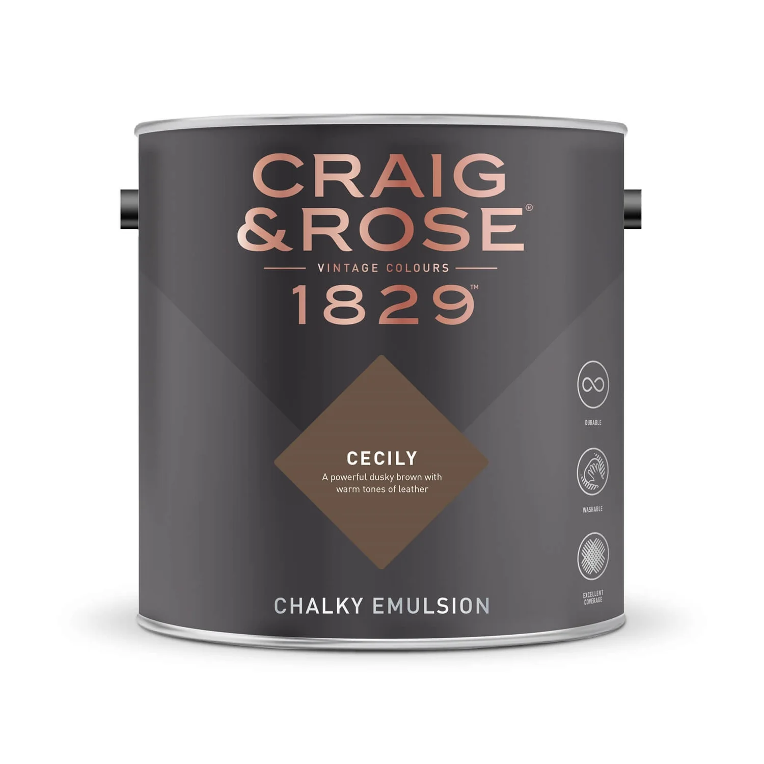 A powerful dusky brown with the deep tonality of leather and artists ink. Strong staging for library and study rooms.