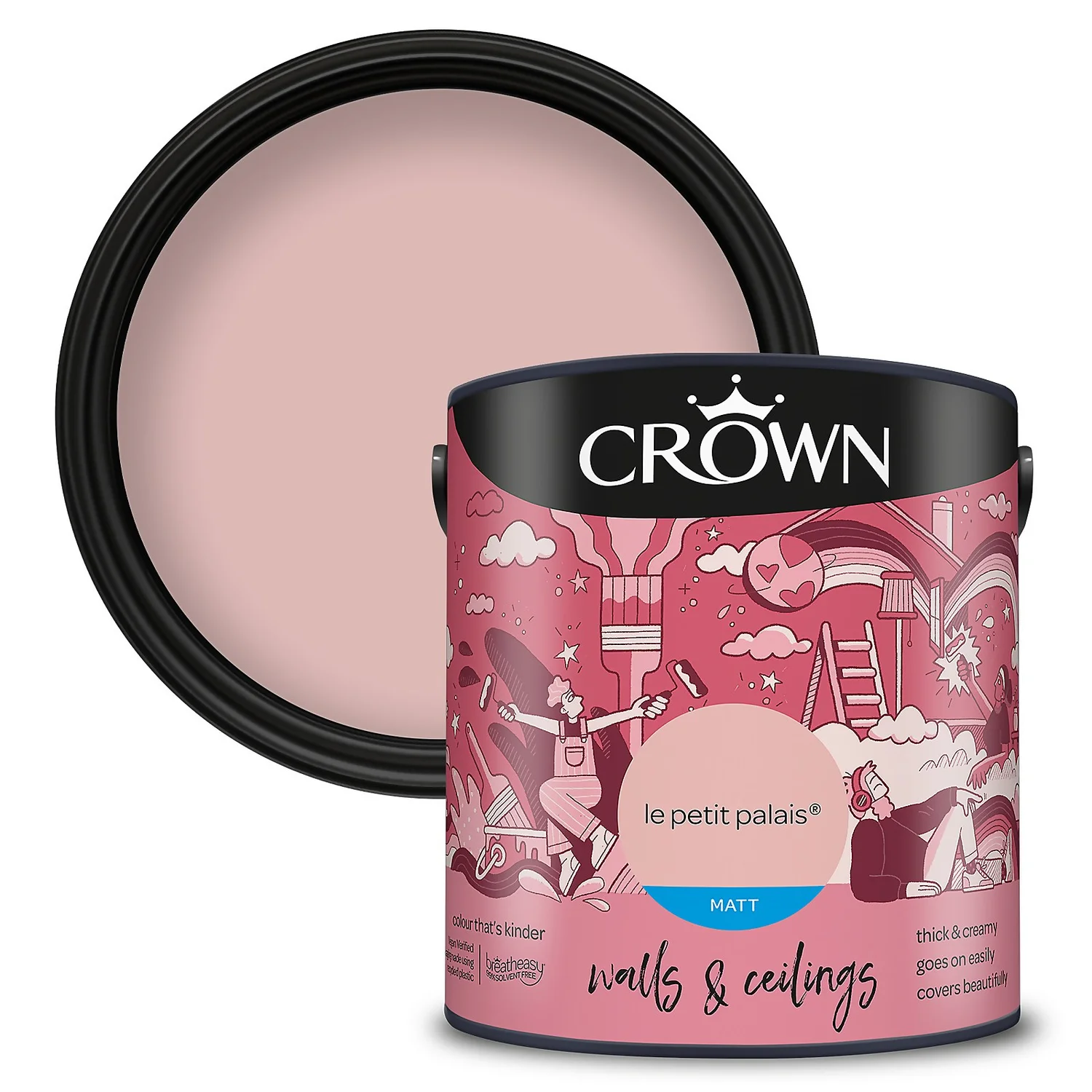 Le Petit Palais – A creamy pink with a hint of coral. One of 80 colours available in this size, Le Petit Palais is a unique shade of pink paint that provides a comforting feel to any room setting. Add a touch of warmth to any space, and to any room, with this beautiful pink paint. “A creamy pink with a hint of coral. Team with dark Greens furnishings and brass finishes for a dramatic contrast or creamy whites of neutral tones for a tonal design”- Crown Colour Specialist.